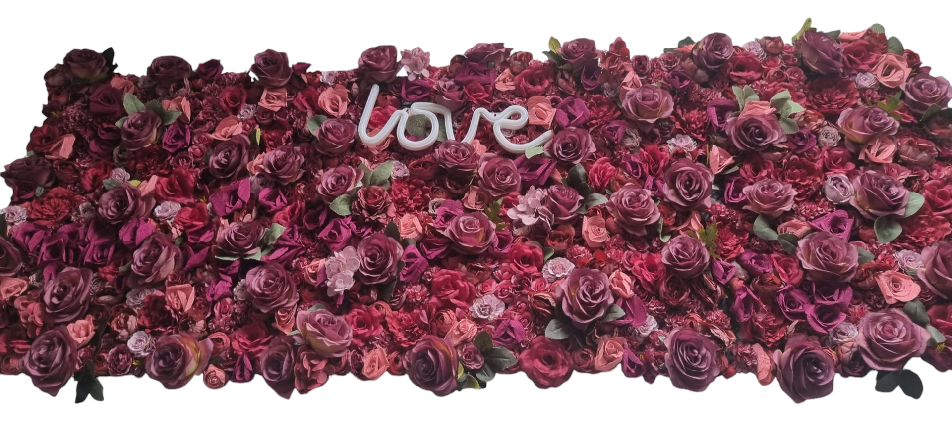Battery operted 'LOVE' light and floral back drop. Perfect for selfie mirror or selfie station.